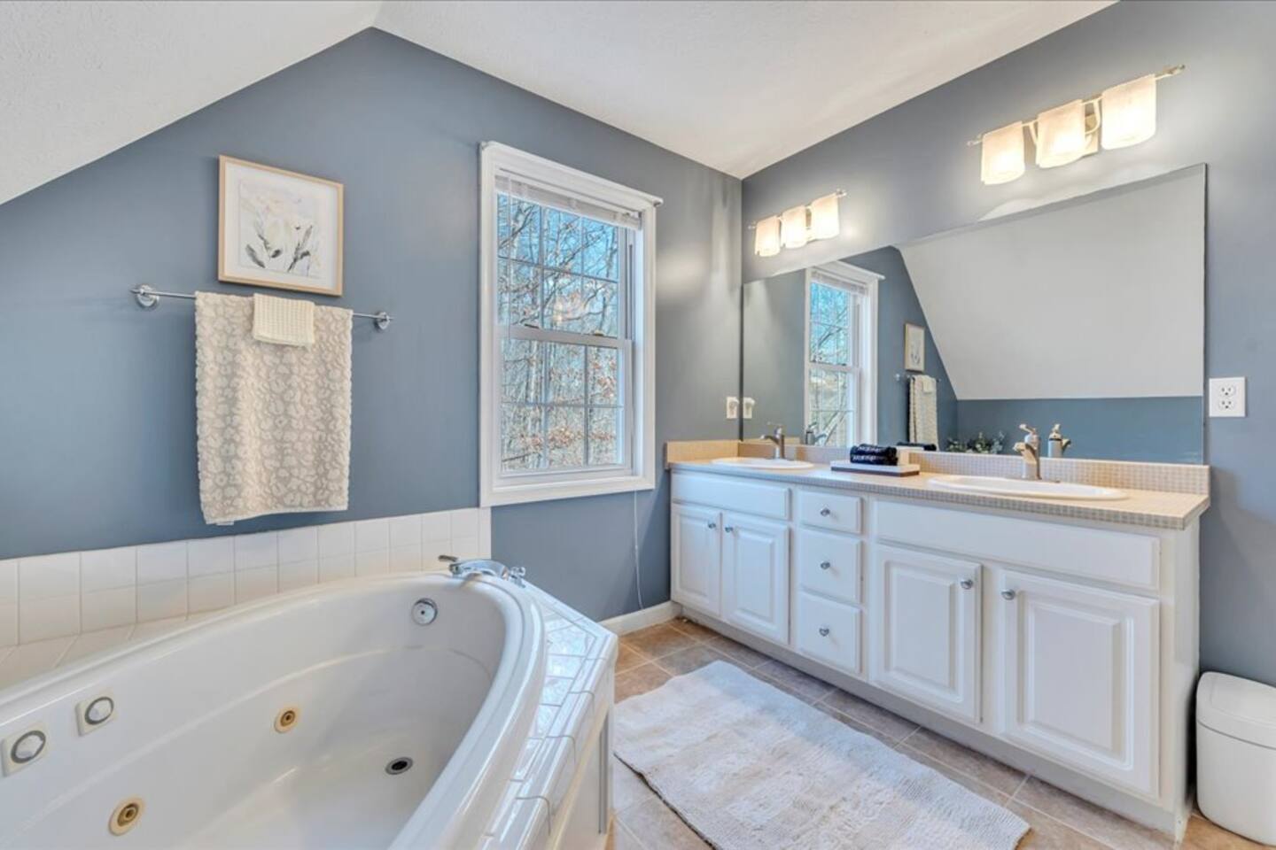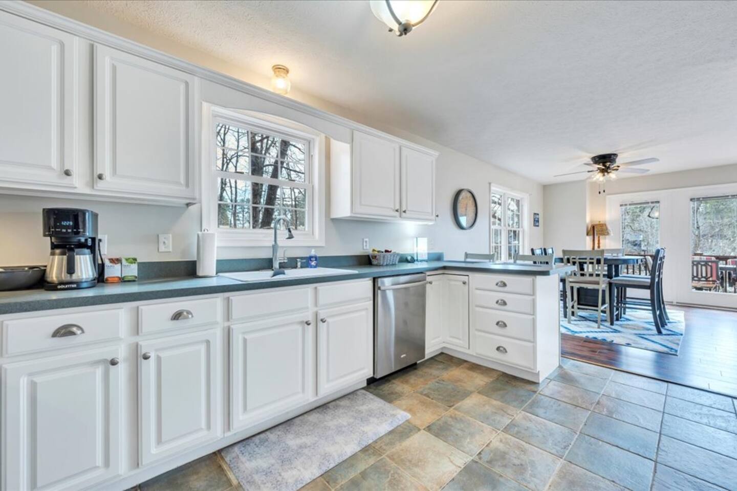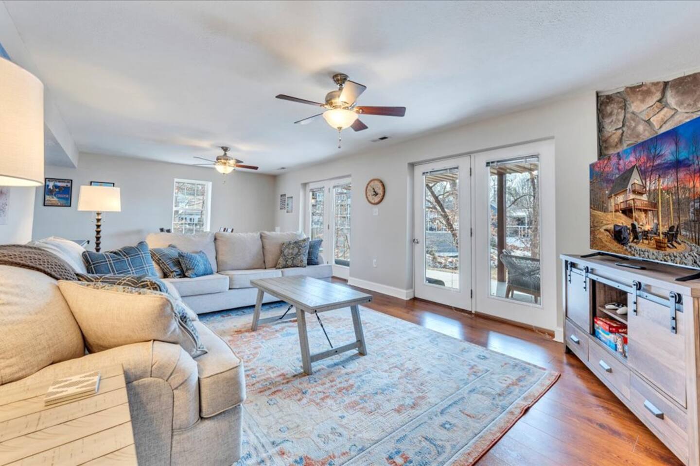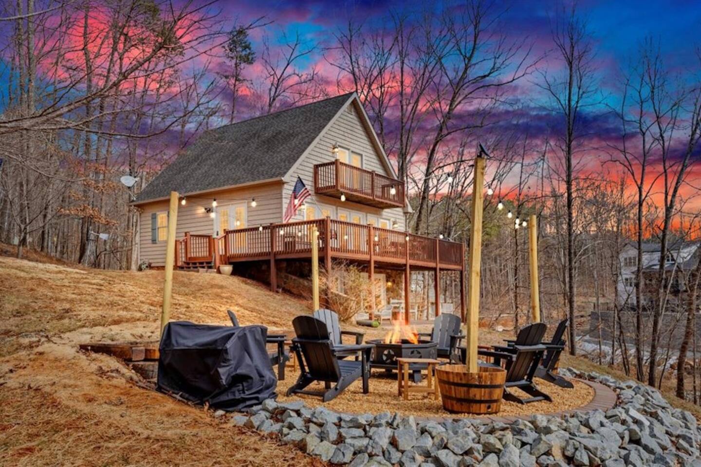 There is nothing negative to say about this property. So many amenities. We never ran out of things to do. The lake is absolutely amazing and the property is cozy yet roomy. The location is very convenient to local restaurants and hiking trails. We did some shopping but kept busy with outdoor activities. Ending each night with time around the fire pit was peaceful and so relaxing. There were unexpected, but much enjoyed visitors (deer) each day. This is a very welcoming property and we would highly recommend it.