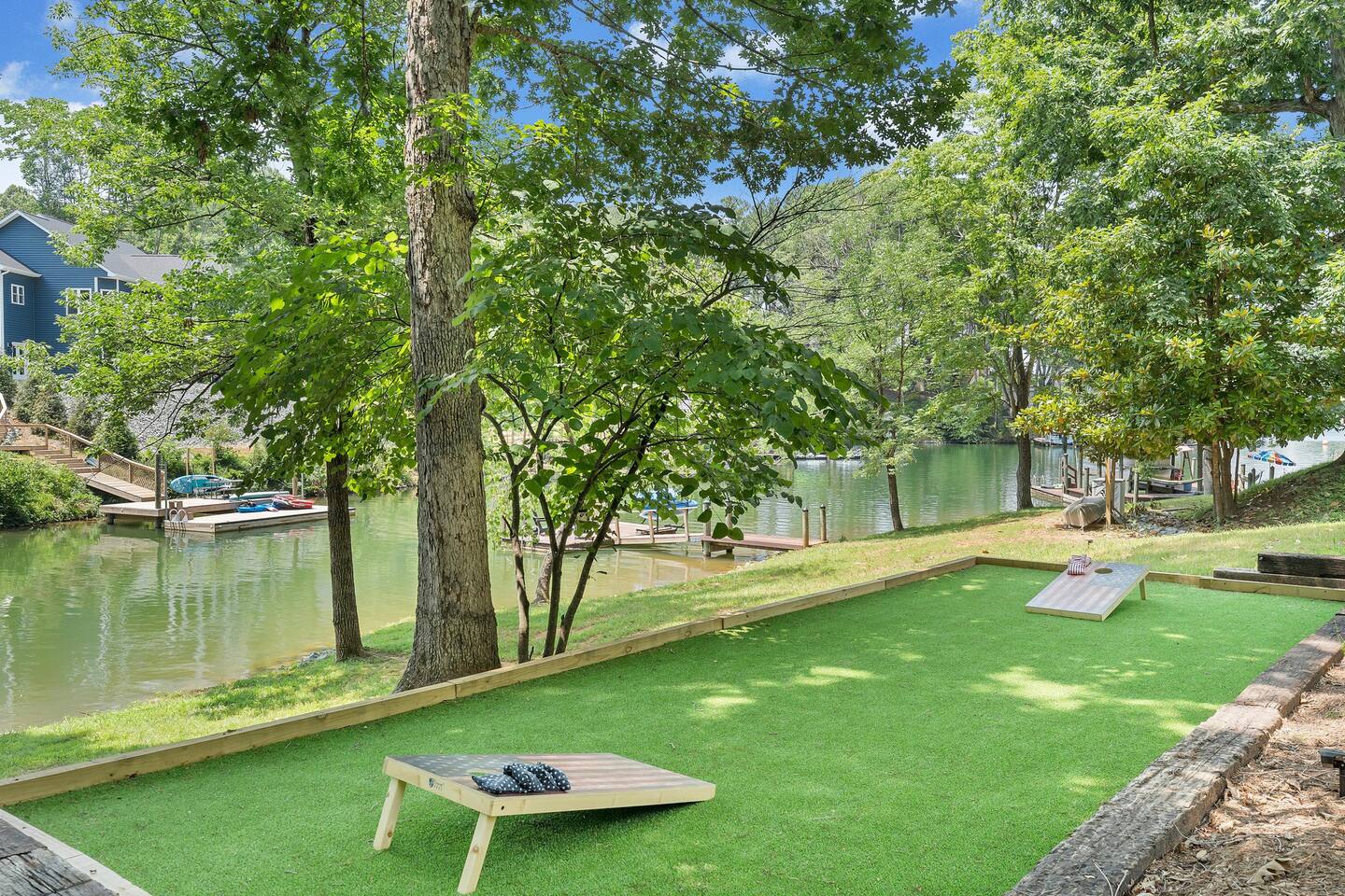 Perfect for families and groups seeking fun, adventure, and relaxation on the lake! *No wake zone cove *Private dock for use *Water toys provided: SUPs, canoe, water pad, etc *Lawn games provided: cornhole, kan jam, etc *Bonfire pit *Fully equipped kitchen and grill *Finished basement with board games, gaming console, and ping pong table * Centrally located: Bridgewater Plaza & Food Lion within 1 mile * A few restaurants walkable * Bring your own boat - on-site trailer storage; ample parking
