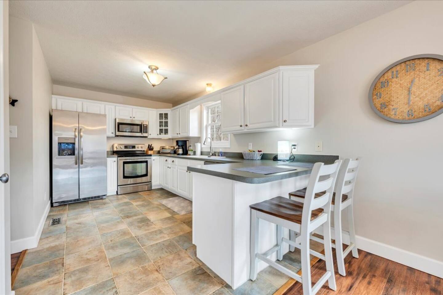A car is needed to get around this area. The private driveway has ample parking for up to 5 cars or 4 cars and a boat trailer.